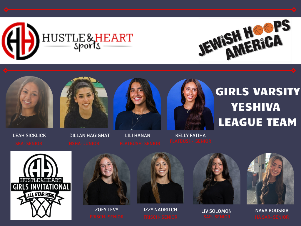 The Yeshiva League All Stars included seniors Merle Kassab of Flatbush; Galil Neuer and Samantha Pruzansky of yeshiva league champion Frisch; Ayelet Ostrin of Ma’ayanot; and Clara Rosen of SAR; and juniors Leila Sakhai of Ramaz, Shirel Kashimallak of NHSA, & Daphna Steinmetz of SKA. Playing for the National team were seniors Meira Falk of Berman Hebrew Academy; Arielle Grossman and Yalee Schwartz of JHA Nationally ranked #1 Shalhevet; Mia Meldung of Donna Klein Jewish Academy; Ilana Schwartz of Ida Crown; and Shani Schwartz of Jewish Day School; and juniors Kira Heumann of YULA and Lilly Yalovsky of Yavneh Dallas.