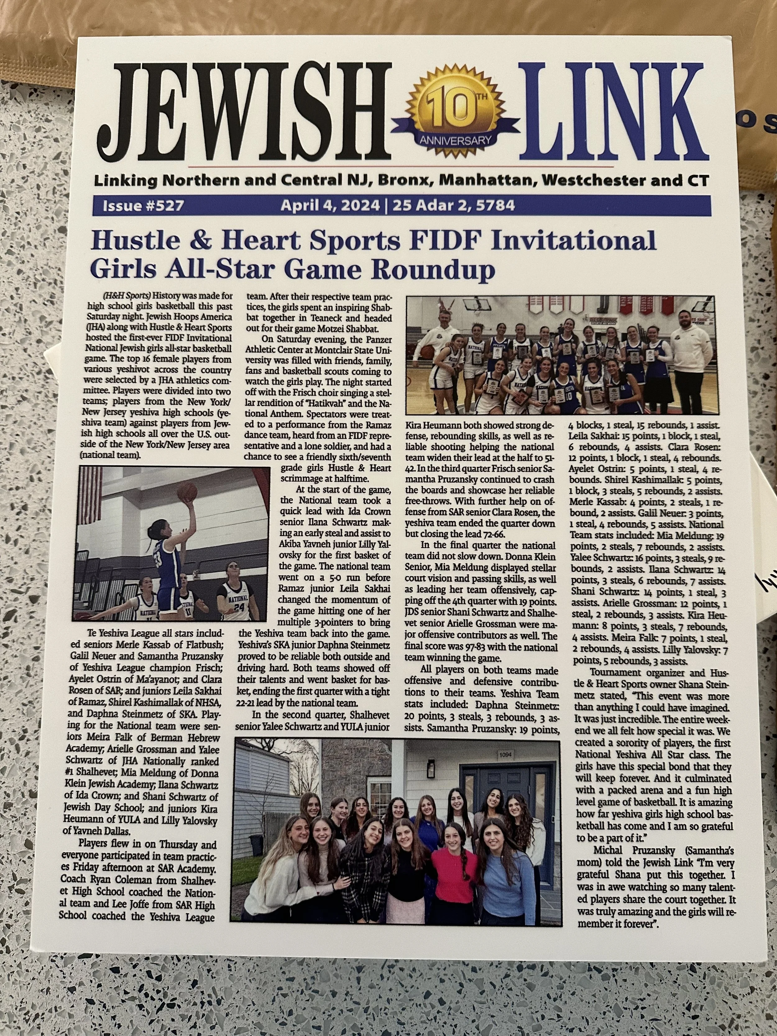 History was made for high school girls basketball. Jewish Hoops America (JHA) along with Hustle & Heart Sports hosted the first-ever FIDF Invitational National Jewish girls all-star basketball game. The top 16 female players from various yeshivot across the country were selected by a JHA athletics committee. Players were divided into two teams; players from the NY/NJ yeshiva high schools (yeshiva team) against players from Jewish high schools all over the US outside of the NY/NJ area (national team).